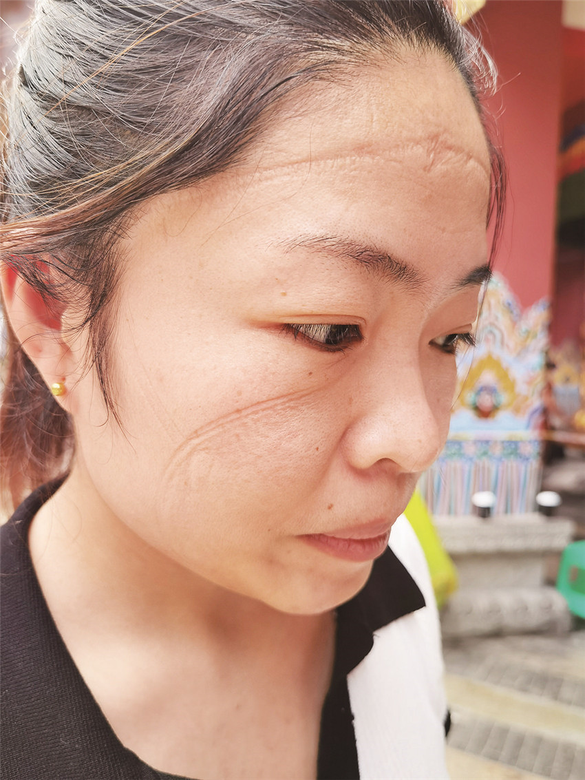 在康定市溜溜城核酸采樣點,完成中午時段的采集任務(wù)后,唐林梅換下防護(hù)服、摘下口罩,衣服早已被汗水浸濕,臉上更被口罩和防護(hù)帽勒出深深的印痕。她告訴記者:“疫情當(dāng)前,作為一名醫(yī)護(hù)人員,堅持、堅守是我的責(zé)任和使命。”據(jù)了解,這段時間,唐林梅的奶奶身患疾病急需她照料。