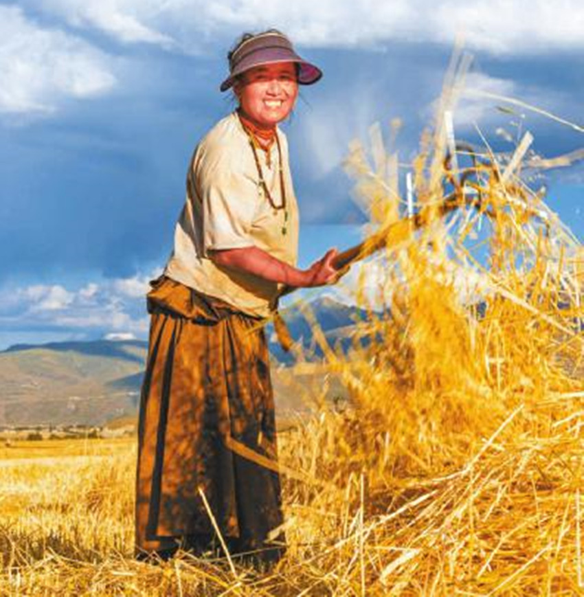 8月,甘孜州逐步進入秋收時節(jié),道孚縣、爐霍縣、甘孜縣等地種植的青稞、小麥逐漸成熟,田間地頭是繁忙的收割景象。