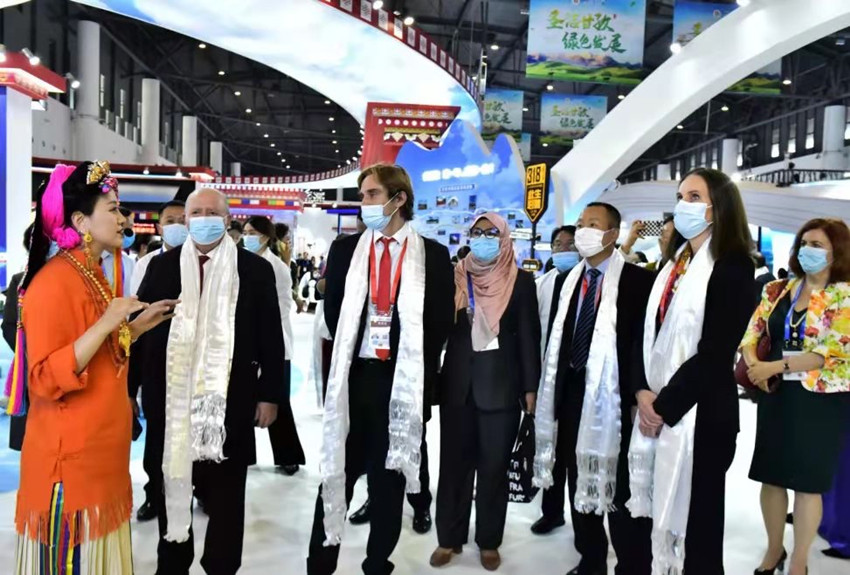 在第十八屆中國西部國際博覽會上向外賓推介甘孜。