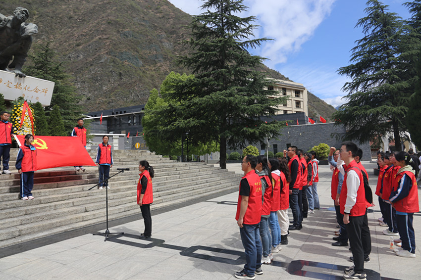 本網(wǎng)訊 為深入貫徹落實黨的二十大精神,深入學習習近平新時代中國特色社會主義思想,進一步提高黨員教師愛國愛黨意識,近日,康定中學黨委第一支部黨員、入黨積極分子,甘孜州王飛、王海燕名師工作室領銜人、骨干成員,教科室全體成員,初三團總支學生團員代表,在瀘定縣紅軍飛奪瀘定橋紀念碑公園、烹壩鎮(zhèn)沙灣村聯(lián)合開展主題黨日活動。