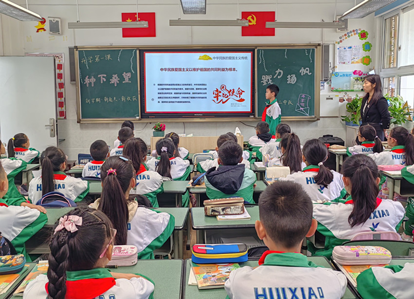 圖為康定市回民小學(xué)開展的“開學(xué)第一課”活動(dòng)現(xiàn)場(chǎng)。