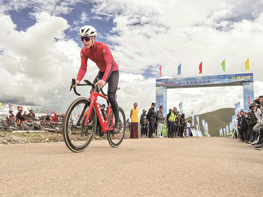 2023年8月11日,作為“福地色達·金馬之邀”草原游牧文化遺產(chǎn)體驗季系列活動之一的金馬草原自行車天路挑戰(zhàn)賽在格薩爾文化藝術(shù)中心鳴槍開賽。100多名來自全國各地的自行車專業(yè)運動員及自行車愛好者齊聚福地色達,共赴一場別開生面的體育盛宴。 一位參賽選手激動地說:“我是從湖北武漢過來的,第一次參加海拔這么高的比賽,感覺很好、很棒。一路風(fēng)景超美,美呆了!如果還有這樣的比賽,我一定會再來的!”