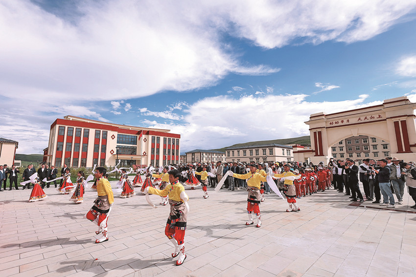 9月12日,走進色達縣椒江希望學(xué)校,寬闊的操場、彩色的跑道、規(guī)范的球場,生龍活虎的學(xué)生們正進行體育活動。