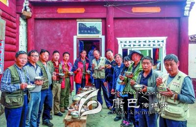 創(chuàng)作采風期間,北部高原帶著泥土芬芳的生活深深地陶醉了隊員們,不知不覺,大家都成了早起晚歸,不辭艱辛的攝影人。每天早上4、5點起床是常事,夜幕四圍才吃晚飯更是習慣。團結、協(xié)作、樂于助人成為一種自覺的風氣:60多歲的趙文光老師退休前曾任過康定縣宗教局和縣政法委領導,他成為采風隊最好的藏語翻譯;身板硬朗的他還被稱為“能攆獐子”的人。隊員辛沂外出拍照的時間最多,走的地方也很多,外出經(jīng)驗豐富,他精心準備的常用藥品熱心幫助了許多人。唐保安老師工作時常到農(nóng)村牧區(qū)調(diào)研,日積月累的基層生活知識成了采風中不可多得的向?qū)?。被譽為攝影后期制作高手的胡庭輝每天義務為隊友考貝蓄存卡,講解攝影知識。王明陽、游建中更是身體力行地作表率,吃苦在前,當向?qū)Фㄅ臄z點,心甘情愿地為隊友們服務。在宗塔草原民居接待站,高齡的代奇元老師和游建中不顧外出拍攝的勞累,主動熱心地親自下廚,為隊友們做出可口的飯菜。13日上午,藍色中巴在海拔3600公尺的老折山爆胎,州攝協(xié)主席,也是這次帶隊的郭昌平身先士卒,帶領會修車的胡庭輝、黃元康等不顧高山缺氧,積極幫司機換輪胎。離開宗塔草原最后一晚,原本安排此行唯一一次早上8點起床,讓隊員們好好休息一個早上,沒想到不到早上6點,全體隊員無一遺漏地都起床追光逐影拍照去了。來自四川民族學院的黃元康外出拍照返回,還忙著幫中巴車李師傅擦洗車廂。李師傅在創(chuàng)作采風期間也深受感染,這天也沒在床上呆住。他對筆者說:這段時間和你們早晚相處,才知道攝影創(chuàng)作有多辛苦,你們的吃苦耐勞精神不得不讓人佩服。我今早上也睡不著呀,起來擦洗車廂,也想讓你們路途中乘坐得舒服一點……