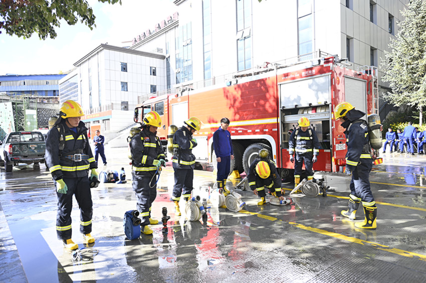 消防人員開展消防救援訓練。 實習記者 賴強 攝