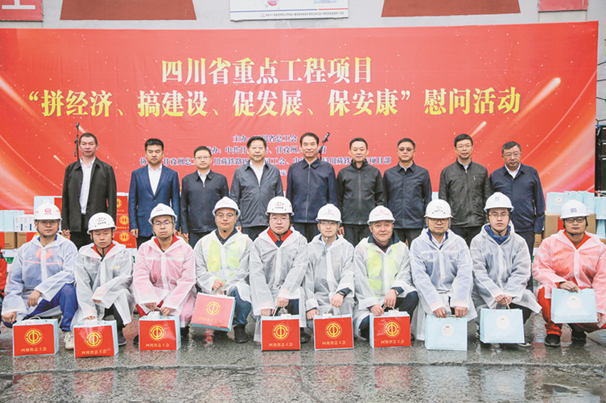 省委常委、統(tǒng)戰(zhàn)部長趙俊民(左五),州委書記沈陽(右四)等領(lǐng)導(dǎo)赴甘孜州重點工程項目開展“拼經(jīng)濟、促發(fā)展、保安康”慰問活動。