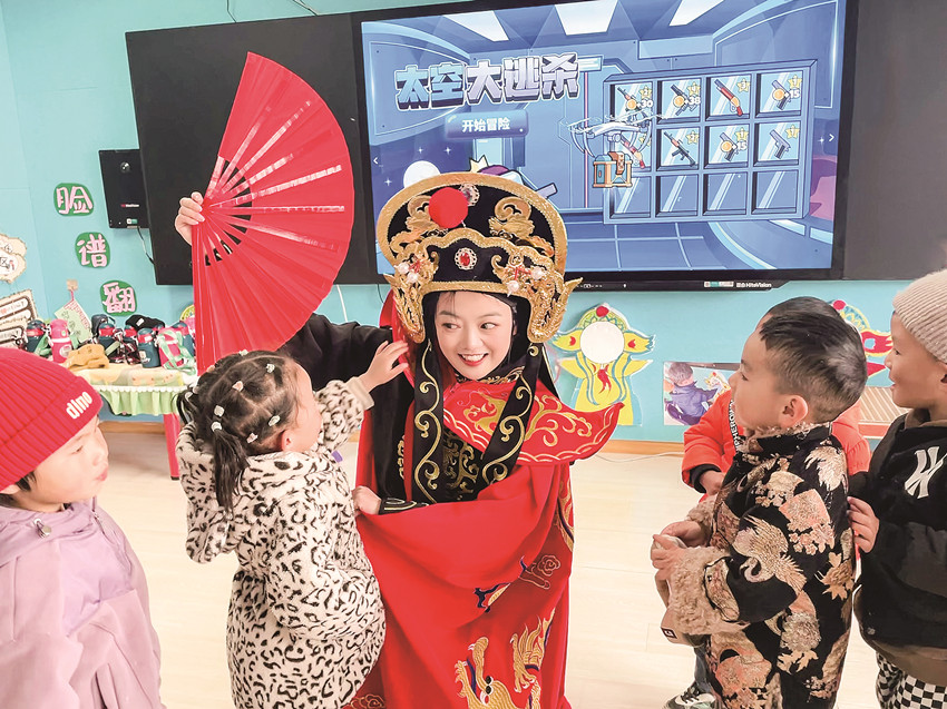 卓妍雅讓孩子們體驗(yàn)川劇變臉。