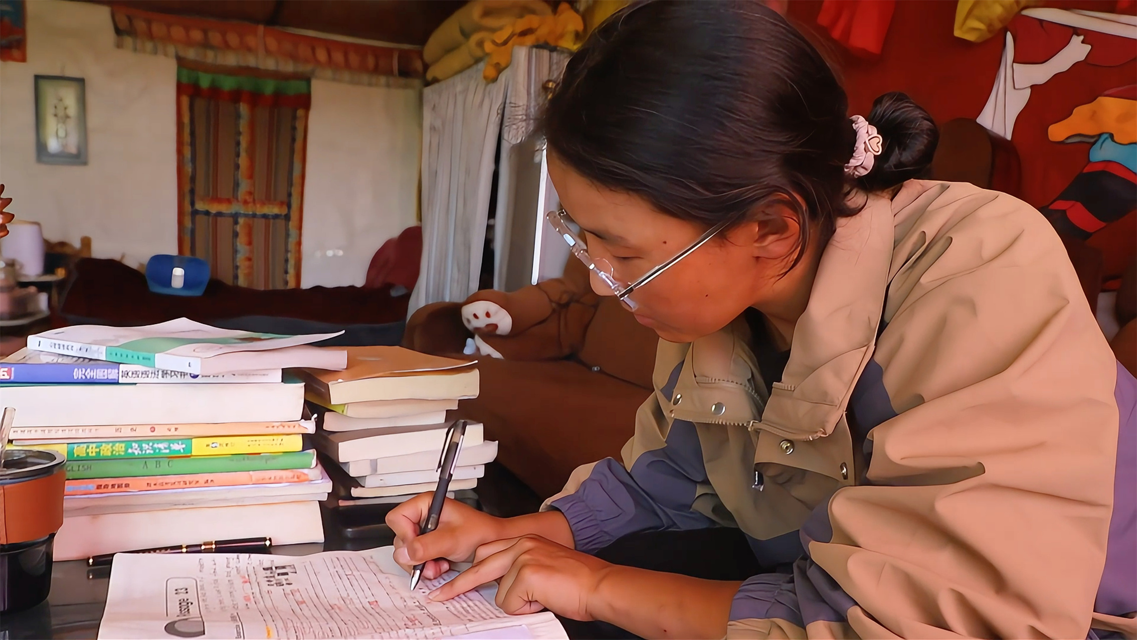 扎西拉姆作為家中的老四,從小便展現(xiàn)出了與眾不同的堅韌與聰慧。她深知家里的每一筆開銷都凝聚著父母的汗水與期望,因此,在學(xué)習(xí)上她從未有過絲毫懈怠。“每次放假回來,我都會很快地做完家務(wù)事,然后開始學(xué)習(xí),想到唯有學(xué)習(xí)才能夠改變家中的現(xiàn)狀,更能改變自己的命運(yùn),我就充滿斗志。我從不會給自己設(shè)立固定的學(xué)習(xí)環(huán)境,草地和山坡都是我學(xué)習(xí)的平臺?!辈莸厣?、山坡頭、夜深人靜的燈光下……總能見到扎西拉姆埋頭苦讀的身影。