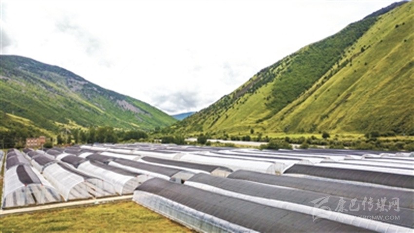 呷巴鄉(xiāng)鐵索村大棚蔬菜基地全貌。