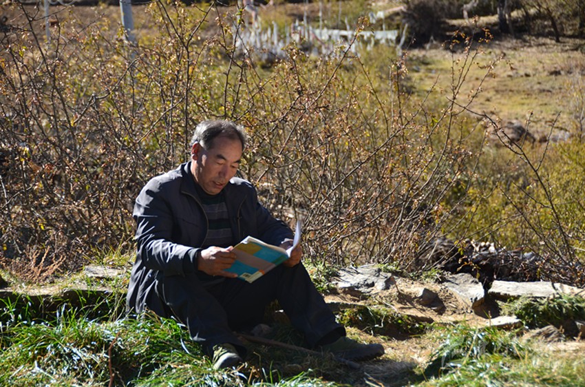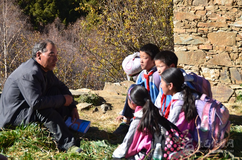 那一年,教室的過道里燃起熊熊的炭火,孩子們坐在溫暖的教室里,那郎朗的讀書聲久久縈繞在藏寨的上空。就這樣,復式班級的教學工作他一干就是十余年,后來,村里的兩位高中畢業(yè)生也走進長納村小,長納村小的師資力量得到了補充。那一年,長納村小成立第一個教研組,阿布里擔任語文、數(shù)學教研組組長,在教研會議上,他將自己的教學經(jīng)驗無私傳授給兩位代課教師。