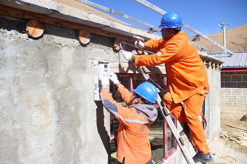 理塘公司為村戈鄉(xiāng)12戶(hù)貧困戶(hù)及五保戶(hù)安裝新電表及布線。