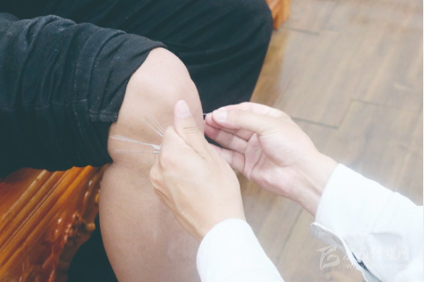 圖為醫(yī)生正在為病人扎針。