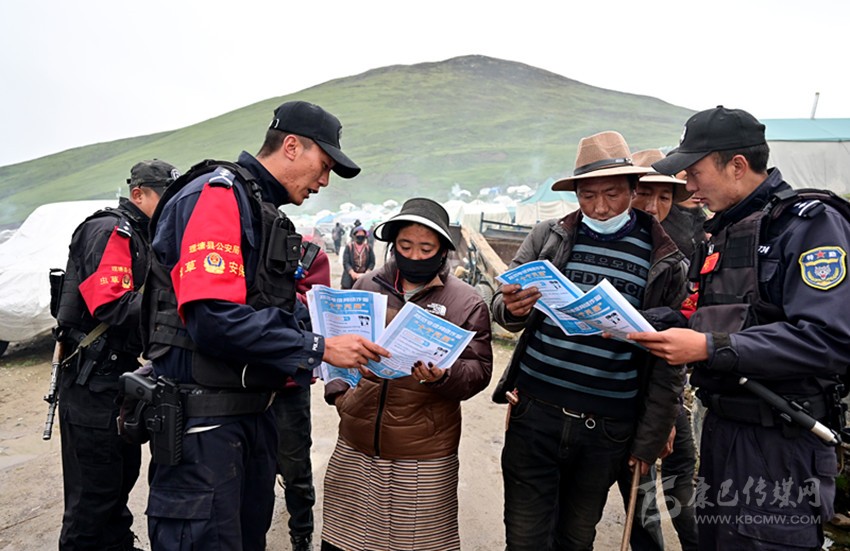 回到集中居住點(diǎn),登孜羅布和同事又來(lái)到蟲草交易市場(chǎng),向群眾和商販宣傳反電信詐騙的知識(shí),提醒大家守好錢袋子,不要讓挖蟲草辛辛苦苦掙來(lái)的錢被騙走了。民警們還對(duì)小賣部進(jìn)行檢查,查看有沒(méi)有銷售過(guò)期或假冒偽劣的生產(chǎn)生活用品以及管制刀具等違禁品。傍晚時(shí)分,居住點(diǎn)里炊煙裊裊,勞碌了一天的群眾開(kāi)始生火做飯,民警們又要開(kāi)展巡邏,提醒大家注意用火安全。夜幕降臨,當(dāng)大家進(jìn)入夢(mèng)鄉(xiāng)的時(shí)候,登孜羅布和他的同事仍然值守在崗位上,守護(hù)居住點(diǎn)夜晚的安寧。