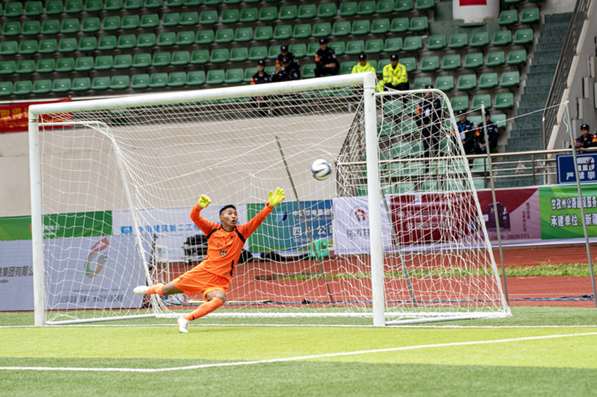 比分領(lǐng)先的甘南隊(duì)此后通過傳導(dǎo)球試圖控制住場(chǎng)上局勢(shì),昌都隊(duì)則全力逼搶尋求機(jī)會(huì),第16分鐘,昌都隊(duì)員一記倒鉤中場(chǎng)解圍助攻,舒展的動(dòng)作引得全場(chǎng)點(diǎn)贊。在第37分鐘,昌都隊(duì)10號(hào)邊路中傳,甘南隊(duì)55號(hào)一記慣性解圍動(dòng)作卻將球推向自家球門,門將始料未及,一個(gè)“烏龍球”將比分改寫為1:1,雙方回到同一起跑線。下半場(chǎng)易邊再戰(zhàn),昌都隊(duì)通過更換進(jìn)攻組合制造出更多威脅,但多次沖擊對(duì)方球門未果,導(dǎo)致場(chǎng)上局勢(shì)一度膠著。