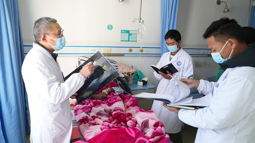 彭勇和彭措是鄉(xiāng)城縣本地的兩名外科醫(yī)生,也是藍(lán)忠榮的“徒弟”。為了提高帶徒效率,藍(lán)忠榮和他倆簽訂了對口支援“師帶徒”協(xié)議書,明確了個(gè)性化培養(yǎng)目標(biāo)和規(guī)范診療操作內(nèi)容,對常見病多發(fā)病診治、危重癥急癥處理等相關(guān)知識進(jìn)行教學(xué)指導(dǎo)。在藍(lán)忠榮的指導(dǎo)下,彭勇和彭措先后掌握了肌腱吻合術(shù)、橈骨骨折整復(fù)、石膏外固定等醫(yī)療技術(shù)。