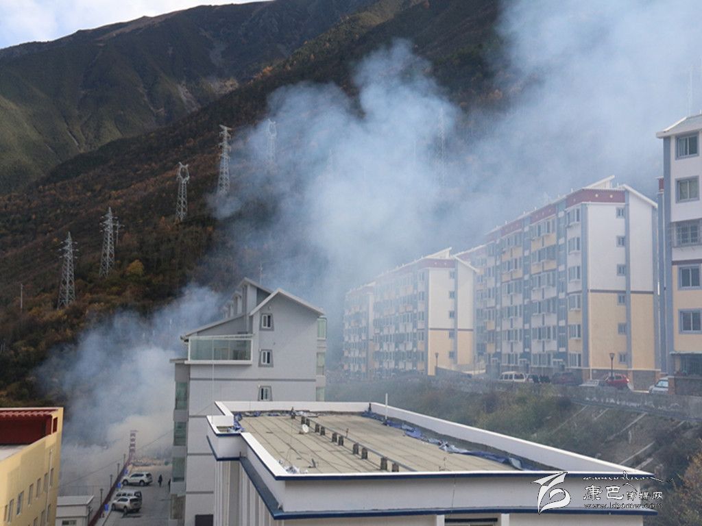 在康定新區(qū)的這片空地上記者看到,本應(yīng)運走的垃圾,卻被就地焚燒,滾滾濃煙彌漫著整個天空,能見度不足十米??諝庵袕浡瘫堑臍馕叮瑔艿眠^往行人捂住口鼻疾行而過。