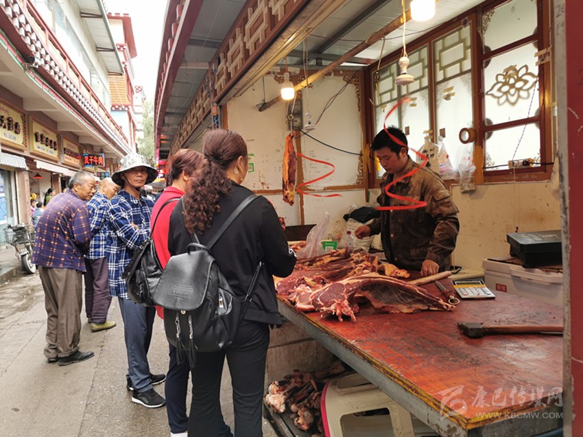 游客正在購買牦牛肉。