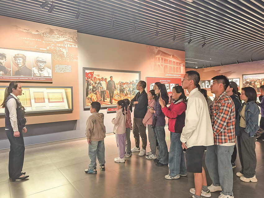 圖為紅軍飛奪瀘定橋紀念館講解員正在為游客講解。
