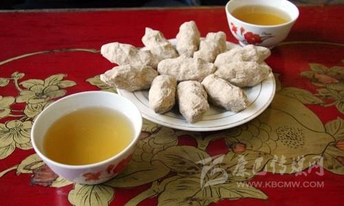 藏族人一日三餐都缺不了糌粑。糌粑就是用青稞制成的炒面。它是將青稞麥炒熟、磨細(xì)、不經(jīng)過篩濾而制成的,與我國(guó)北方制作的炒面有點(diǎn)相似,區(qū)別是北方的炒面是先磨后炒,而糌粑卻是先炒后磨,而且是不除皮的。