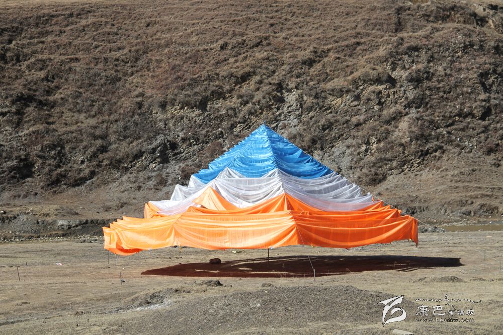 (2)涅槃旗:甘孜州道孚等地沿襲水葬風(fēng)俗,即埋尸河邊或山坡上有大片涅槃旗,向著河流飄向,有讓死者在地獄里減輕痛苦,盡快得到轉(zhuǎn)世。