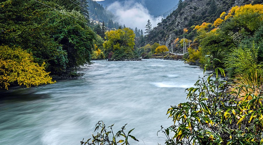 源于康定縣境西北與道孚縣交界處的柯哲德沼澤地帶,為雅礱江的一級(jí)支流,至普沙絨鄉(xiāng)(宜代)折向西注入雅礱江。進(jìn)入森林公園后屬高山峽谷地帶,相對(duì)高差1200米,河流切割深,地形陡峻,全長(zhǎng)30.3公里,平均寬度為30米,最寬處達(dá)80米左右,平均水深5米,最深處可達(dá)30余米,落差2511米,多年平均流量3.47立方米/秒,枯水期僅0.7立方米/秒。兩岸次生天然蒼茫,環(huán)境十分清幽。